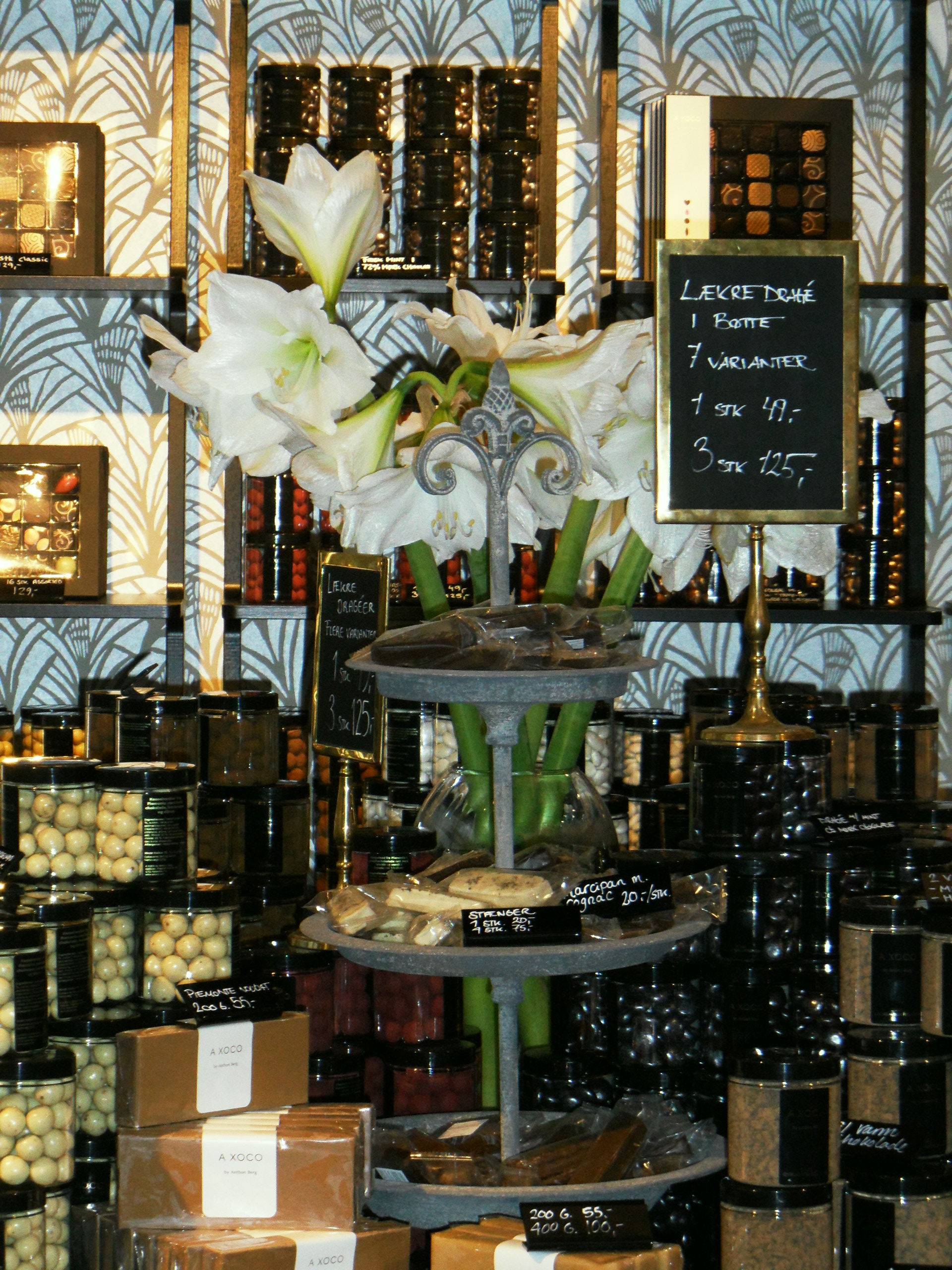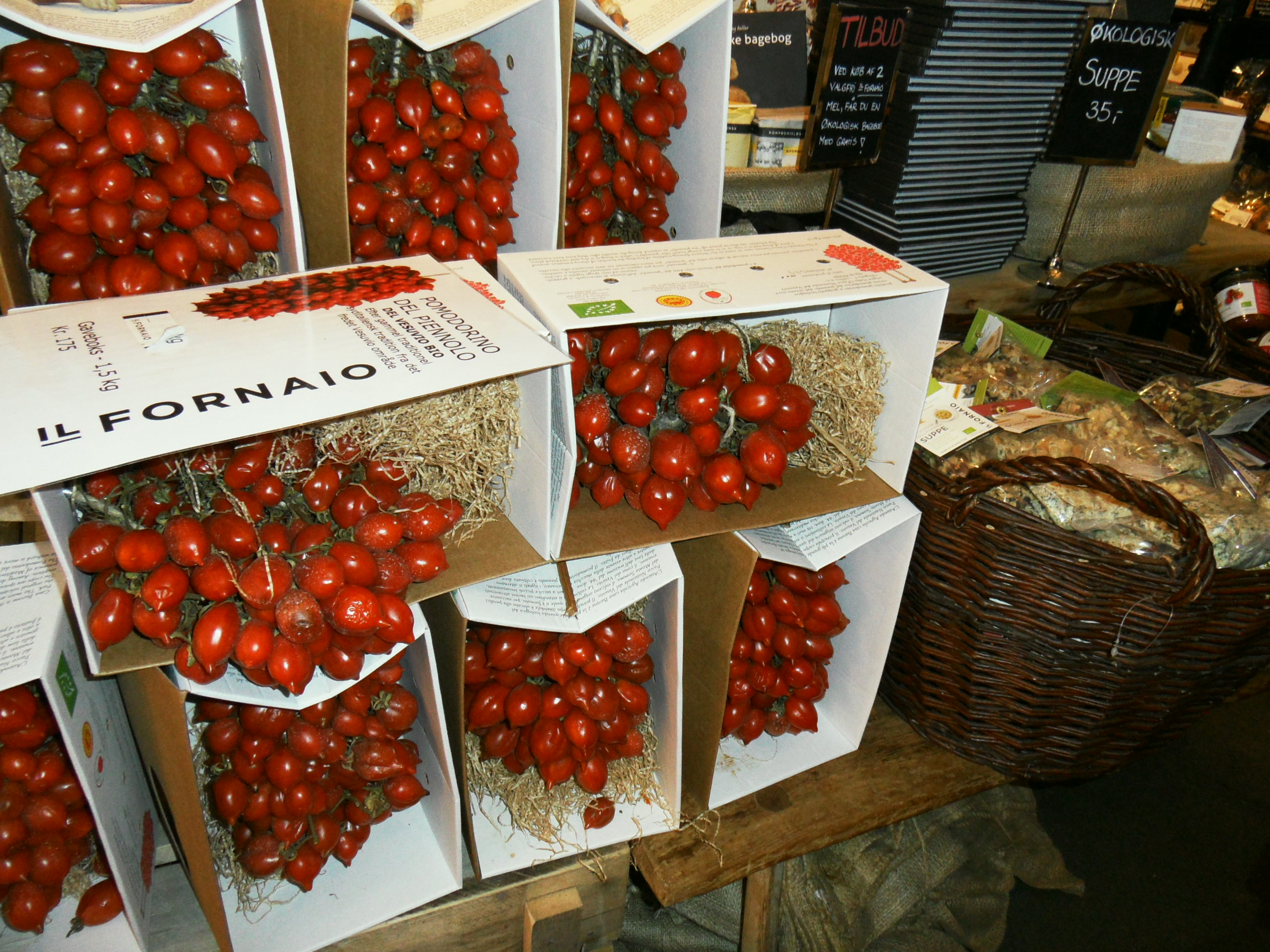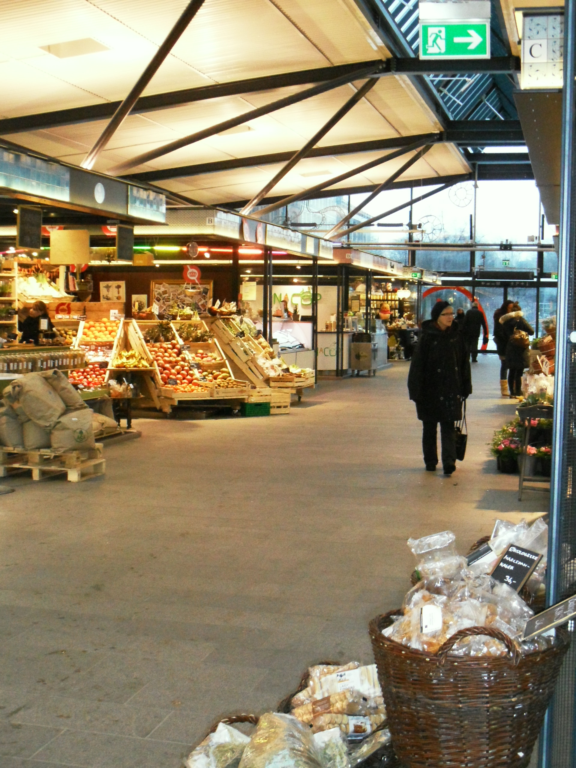Jeg mødtes i formiddag med søster P, inden hun skulle videre på gymnasiet. Det øs-regnede udenfor, så vi krøb i skjul i Torvehallerne på Israels Plads. Fantastisk sted! Jeg var derinde i december og spise vildsvin-sandwich og handle lækkert økoguf til mors julegave, men dengang var der proppet med mennesker. Det var der ikke denne regnfulde torsdag formiddag. Vi fik os en lun latte med rosinsnegl og chokoladecroissant, og slentrede herefter en tur rundt og så på det hele. Og fik en smagsprøve hist og pist. Og ja, det koster mere at handle her end i supermarkedet, men det kan slet ikke sammenlignes. Her får man friske råvarer i udsøgt, udvalgt kvalitet. Stedet emmer af hygge og man kan bruge timer på at fordybe sig i sælgernes boder. Kan anbefales!