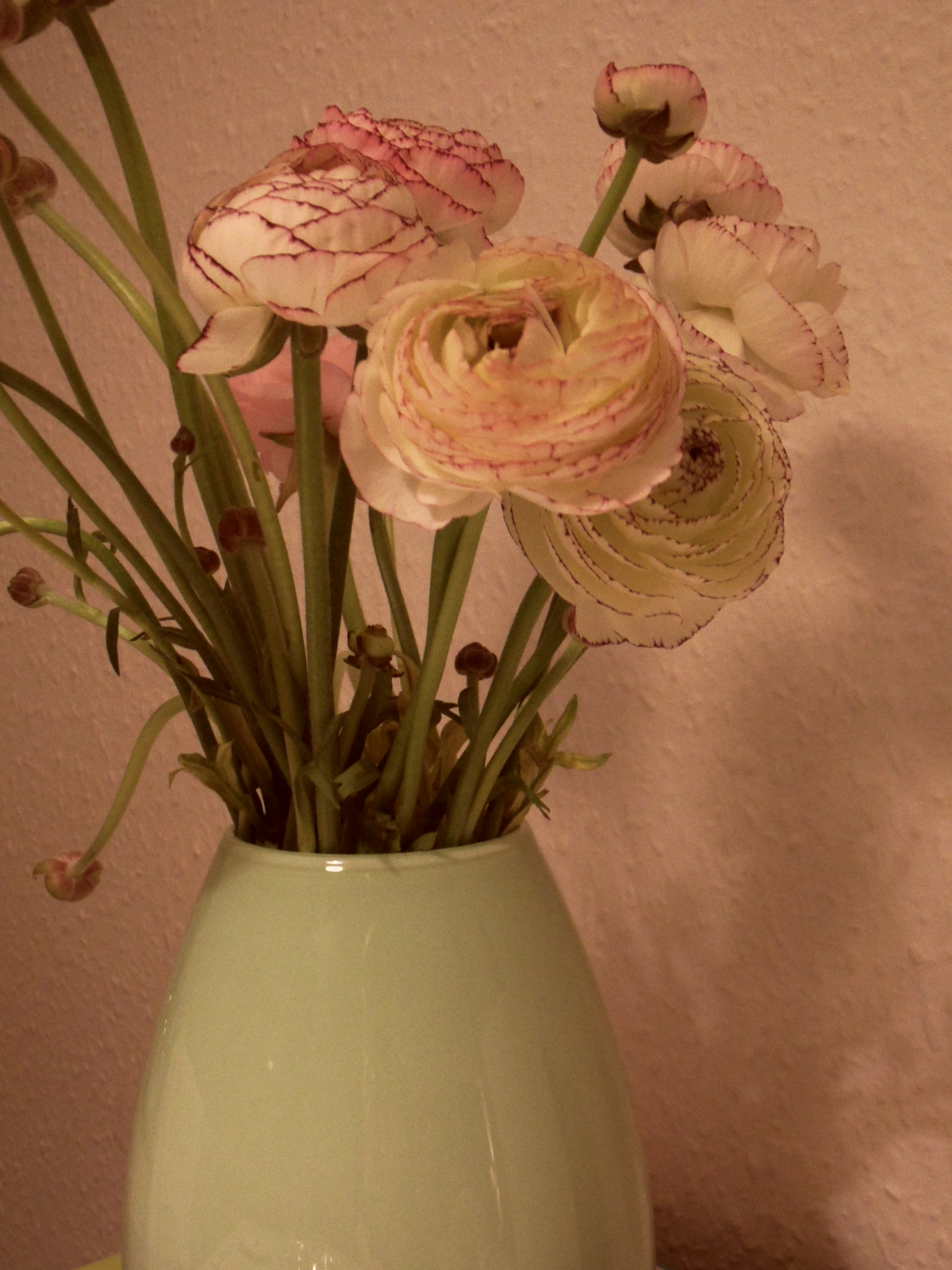 Buskene har små grønne blade og blomsterne vælter frem udenfor. Vejrudsigten siger mere forår og helt op til 20 grader på søndag. Man bliver jo helt glad i låget! Så glad at jeg liiige måtte have lidt forår i stuen også. Og når nu de søde fyre ikke ligefrem står i kø for at give mig blomster, kan jeg da heldigvis købe nogen selv. Og vupti! blev stuen meget smukkere. Og så hjælper det selvfølgelig også på humøret, at jeg lige har fået nyt sted at bo og flytter om 3 uger allerede. Spisekøkken og lille bitte have here I come!