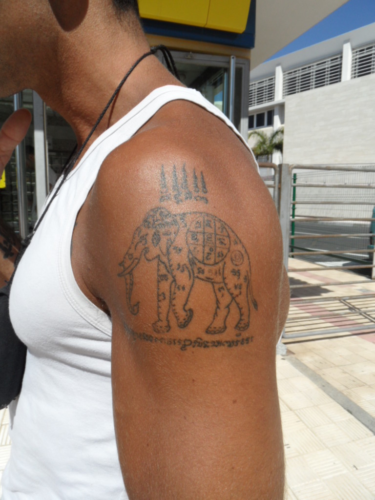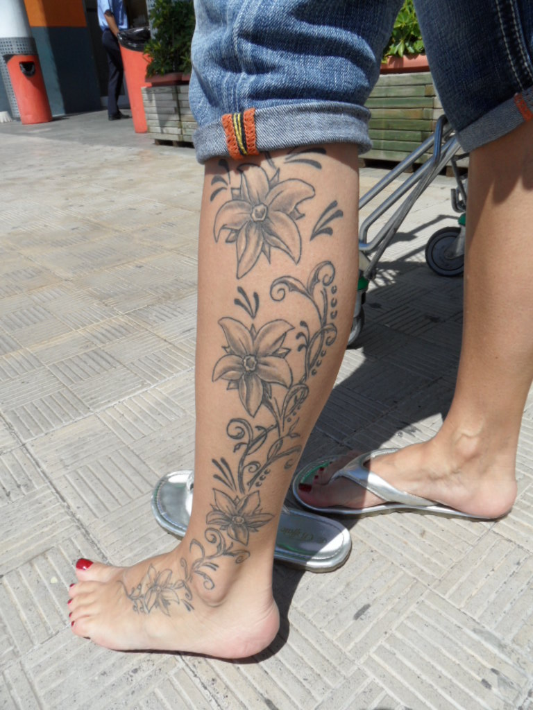 Forleden, da jeg var ude og handle, mødte jeg Luzy med den største og smukkeste tatovering jeg længe har set. Den går nede fra hendes venstre fod, op ad benet, hen over lænden, fortsætter over ryggen og højre skulder for at ende nede på højre overarm. Den havde taget fem dage at lave for et års tid siden. Jeg kunne desværre ikke fotografere hele tattoo´en, da vi jo måtte opføre os anstændigt (og ikke stå og smide tøjet foran supermarkedet!). Men billederne kan ihvertfald give en idé om hvordan hele værket ser ud.