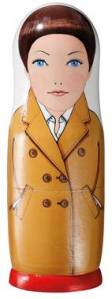 En fin, russisk dukke er det også blevet til. Max Mara Maggie Doll er en sjov nyfortolkning af de klassiske babuschka-dukker. Den russiske kunstner Elena Koba har designet dukken, der forestiller modellen Maggie Rizer som hun så ud i kampagnen fra 1998 – fotograferet af Richard Avedon. Dukken er fremstillet i træ og håndmalet. Se iøvrigt Maggies egen kommentar til dukken på http://beamakesthree.com/2011/10/04/max-mara-turns-60/
