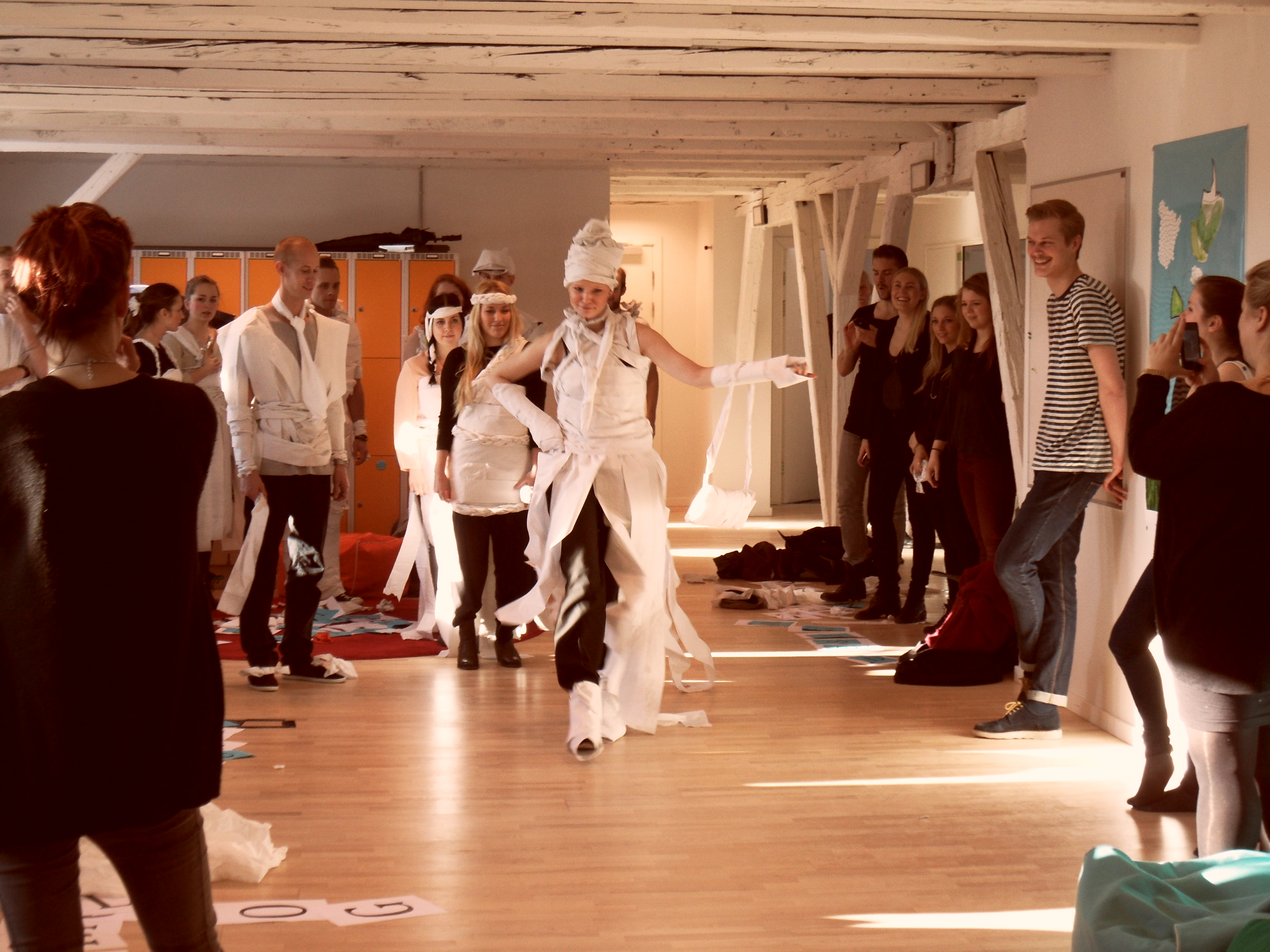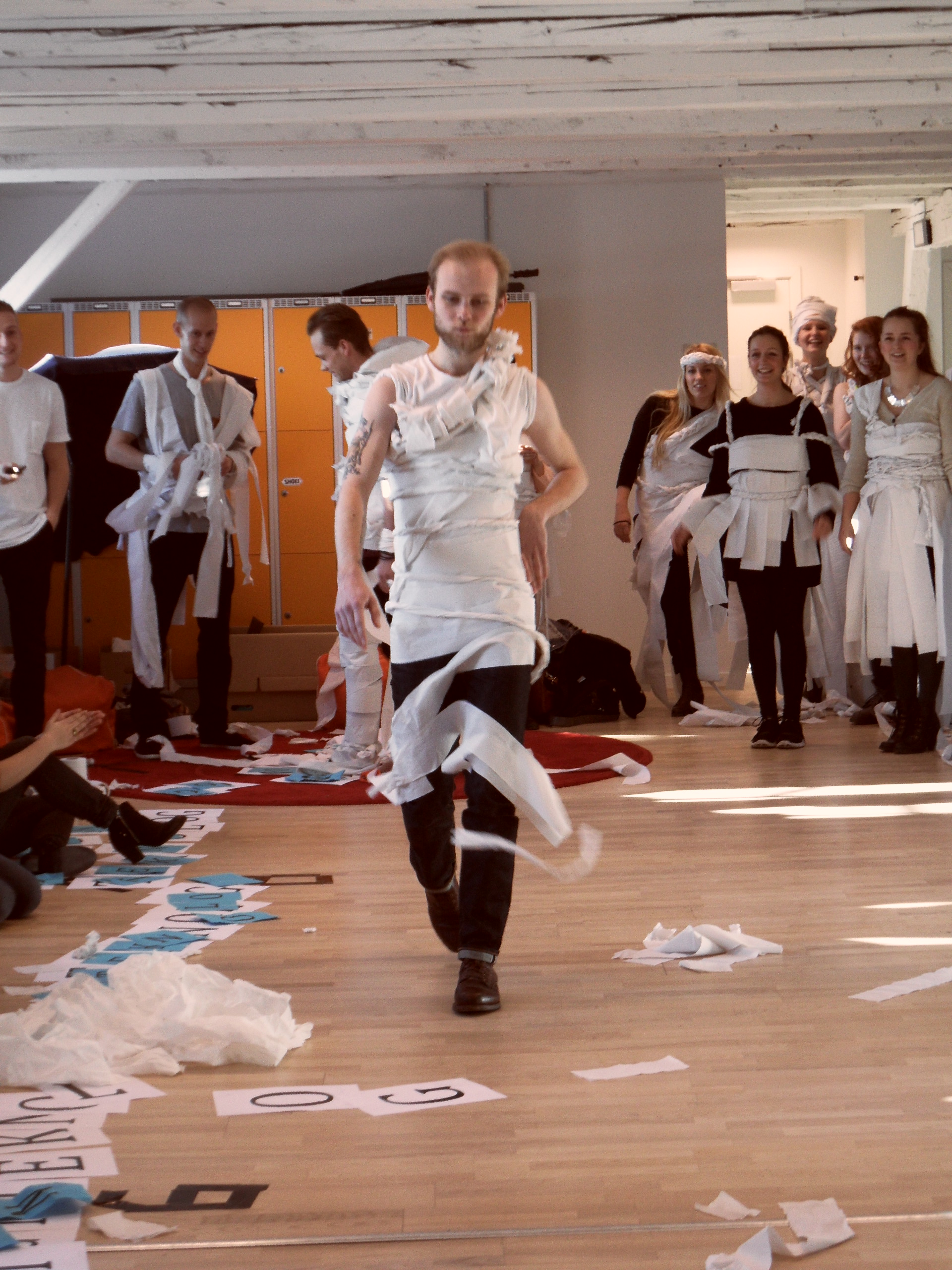 Jeg er startet på ny uddannelse i tirsdags, så denne uge på studiet er gået med intro og lær hinanden at kende-arrangementer. Ret hyggeligt. I dag stod den på bogstav-skattejagt og modeshow af fashionable toilet-papir-kreationer. Måske ikke så gangbart i virkeligheden, men skægt det var det!