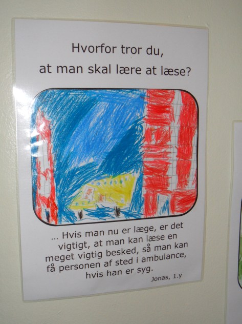 Why do you think you need to learn how to read? I saw these posters made by 7 year-olds in my sons school this morning. So nice and naïve. The world is not so complicated after all….