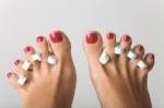 4: Så er det neglenes tur! Også selvom du ikke er typen, der bruger neglelak. Brug en neglepind til først at rense under neglene. Herefter til at fjerne overskydende neglebånd og blidt få skubbet det resterende på plads. Du kan evt. fugte neglebåndene med lidt neglebånds-olie eller baby-olie inden, men neglebåndende skulle dog være bløde af cremen. Er du ikke til neglelak, kan du give neglene en omgang plejende negle-creme, og ellers: Vupti, du er færdig med fødderne! Vil du alligevel lige sætte prikken over i´et med en fin farve på neglene, er der ikke langt igen: Adskil tæerne med en tå-spreder-dims (sorry, ved ikke hvad den hedder) eller ved at zig-zagge et stykke snoet køkkenrulle mellem tæerne (mere hygiejnisk). Rens neglene med lidt neglelakfjerner på en vatronddel (jeg ved godt de er rene allerede, men lakken binder bedre, når der ikke er creme eller lignede på). Læg neglelakken på med lange strøg fra negleroden og over neglekanten. Læg 3 lag og sørg endelig for at lakken er ordentlig tør imellem lagene. Brug evt. base-coat og top-coat. Det gør ikke noget, hvis du klatter ved siden af; når neglelakken er ordentlig tør, kan du fjerne klatterne ved blidt at børste på tæerne med en neglebørste.