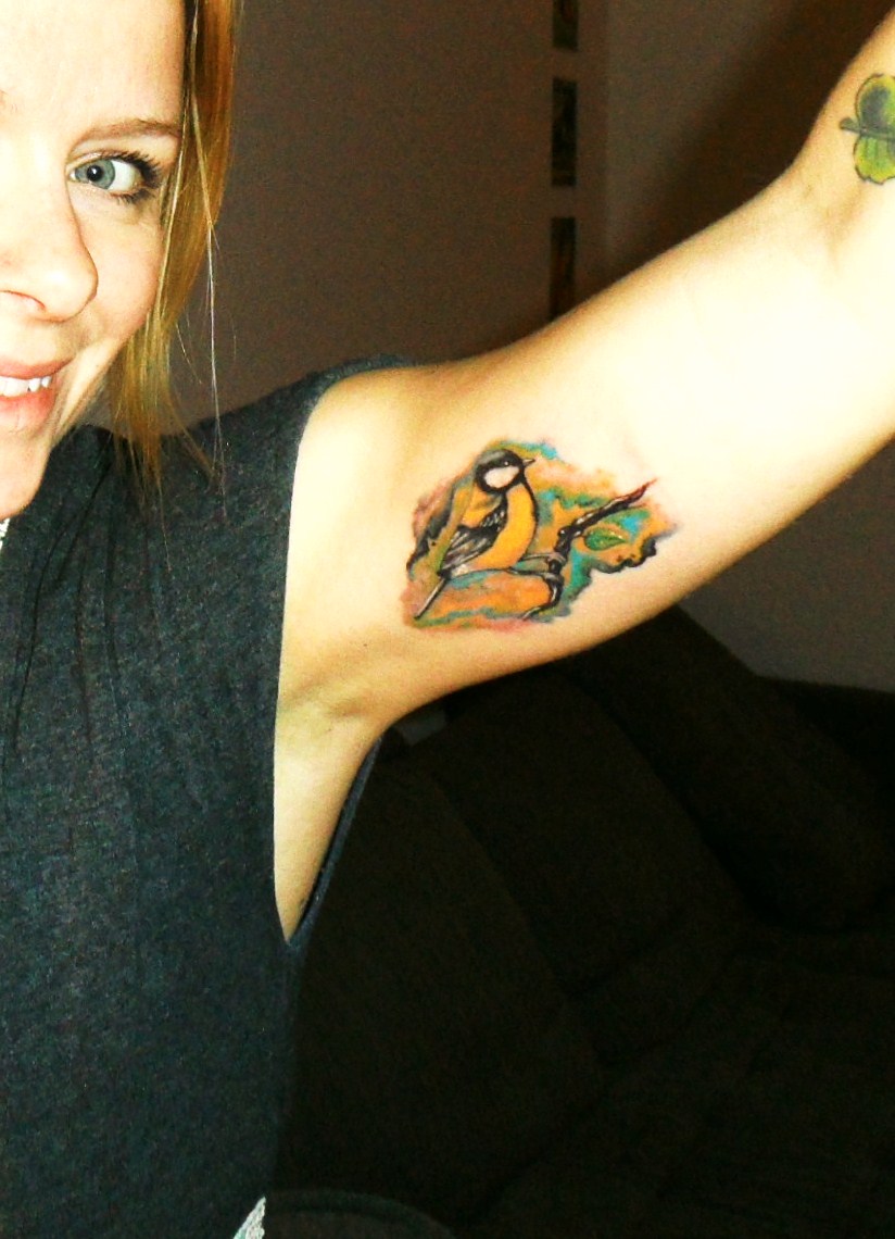 Men nu skal I selvfølgelig ikke snydes for dagens virkelige emne! Der er flere der har spurgt efter et billede af min søsters tatovering (som hun fik lavet i sommers). I indlægget Back to life fra september, lå der et billede fra The Old Barber Shop, hvor hun var i gang med at blive tatoveret af Maria. Så her er er et billede af det endelige resultat: